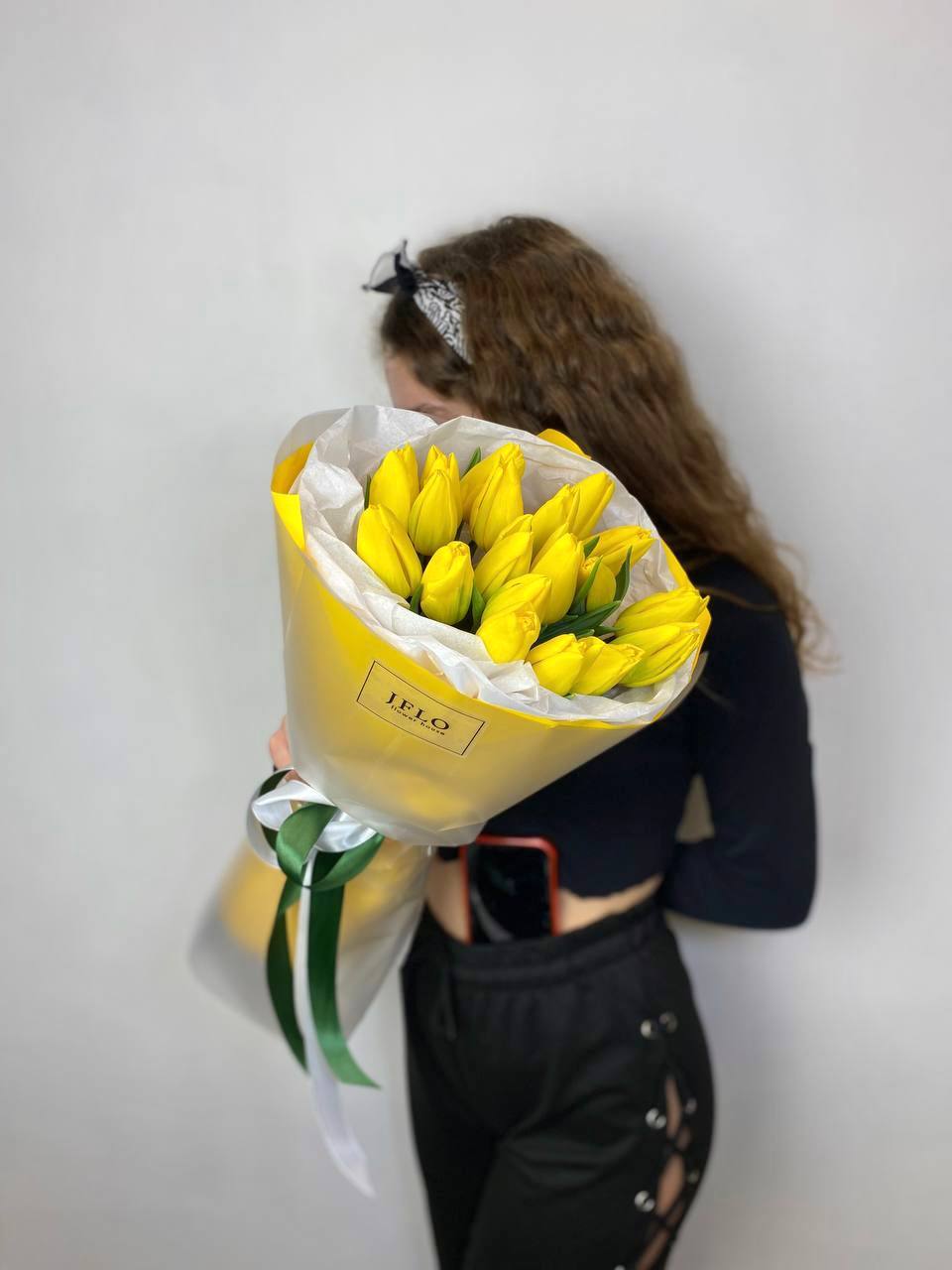 Бутоны держат форму долго и радуют свежестью. Девятнадцать жёлтых тюльпанов в лаконичной упаковке удобны для размещения в любом интерьере.