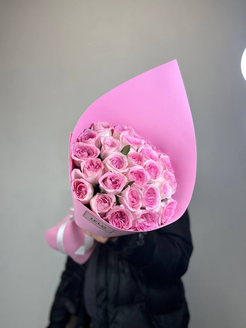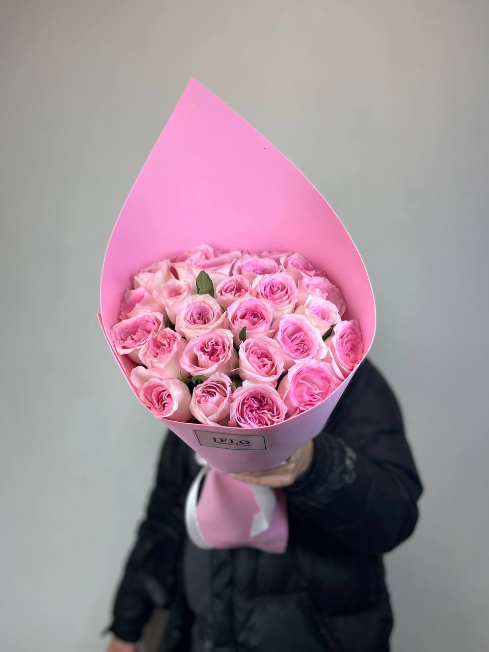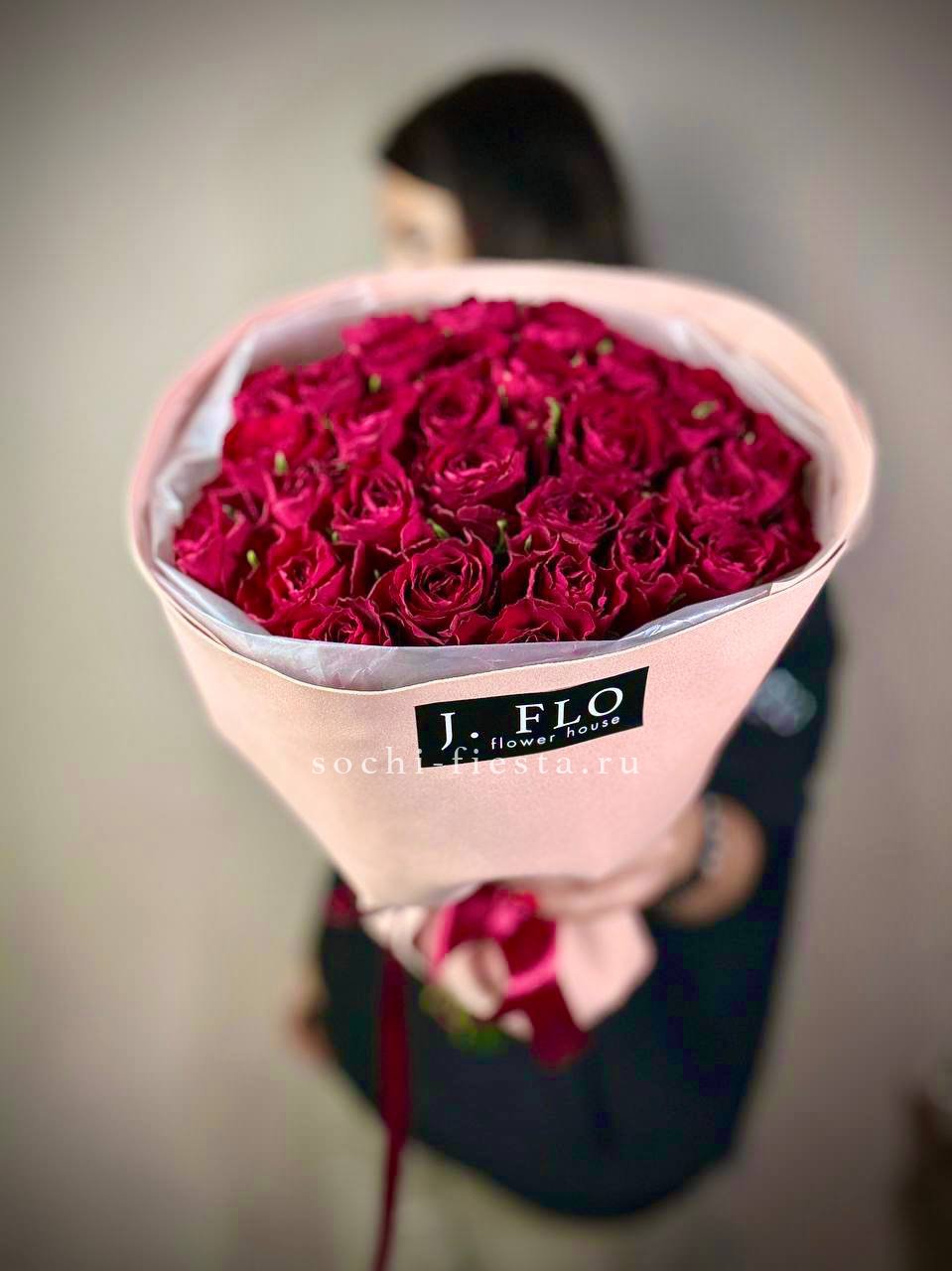Тридцать пять кенийских роз в лаконичной упаковке подходят для современного интерьера и динамичного ритма жизни. Букет выглядит актуально и вписывается в минималистичную эстетику.