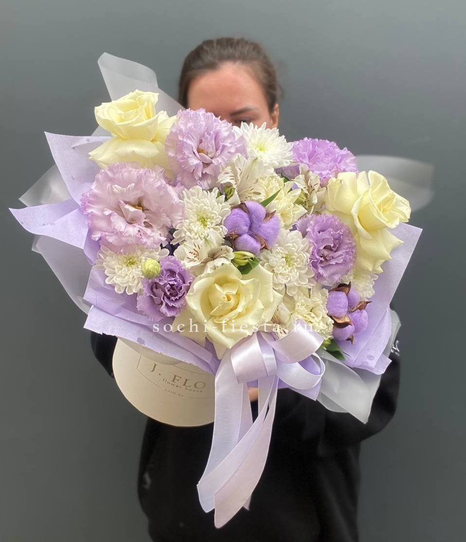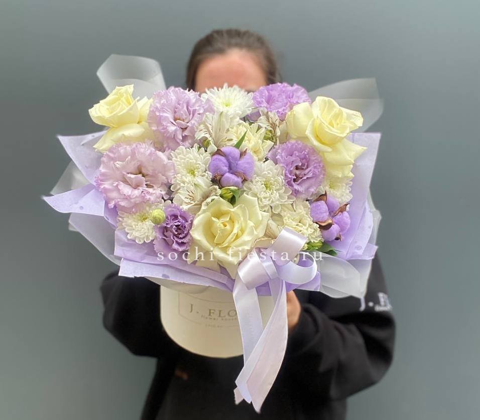 Эта роскошная композиция в модной упаковке объединяет благородные цветы с разными текстурами, создавая многогранный и богатый образ. Деликатные оттенки символизируют утонченность, элегантность и безупречный вкус. Букет подчеркнет индивидуальность дарителя и станет незабываемым акцентом любого торжества.