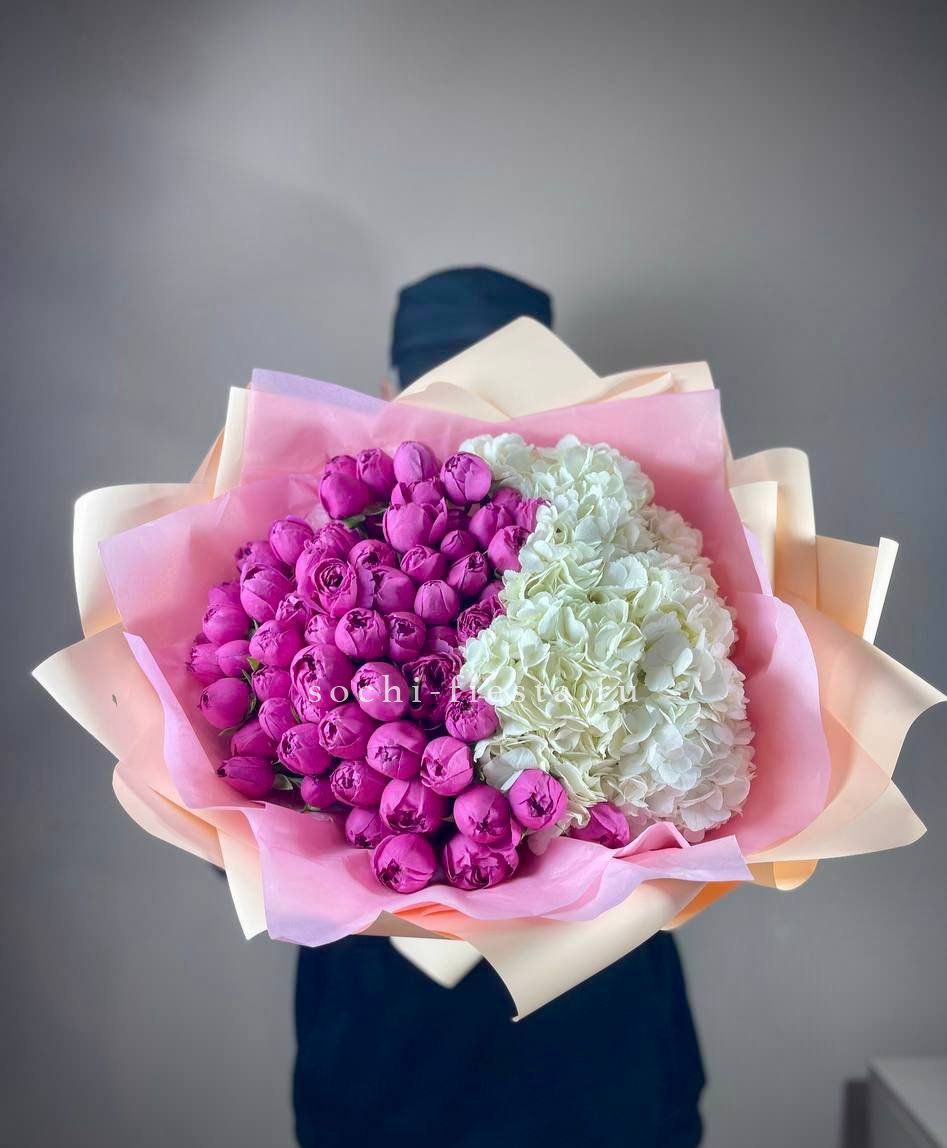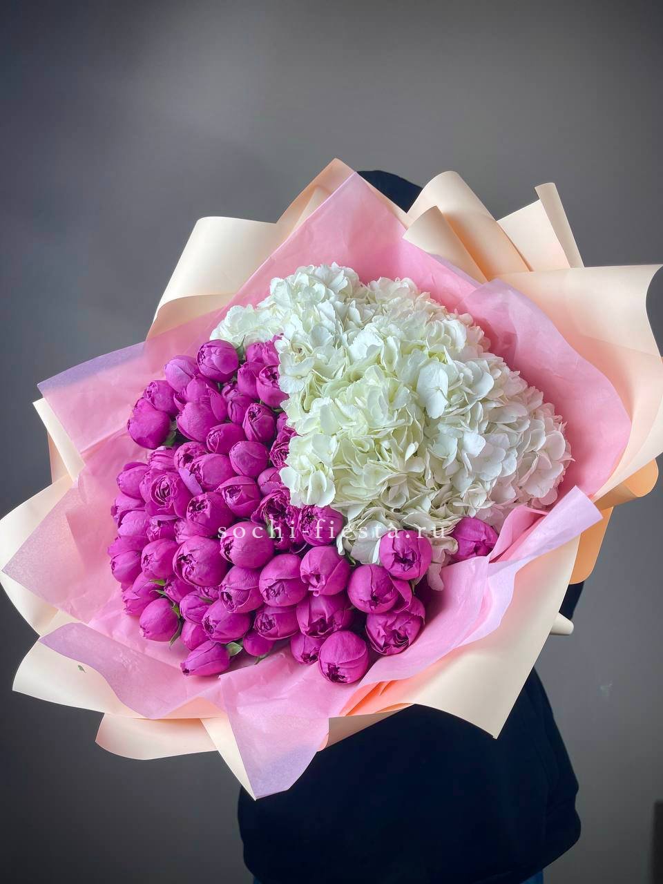 гортензия - 3 шт., лента, дизайнерская упаковка.