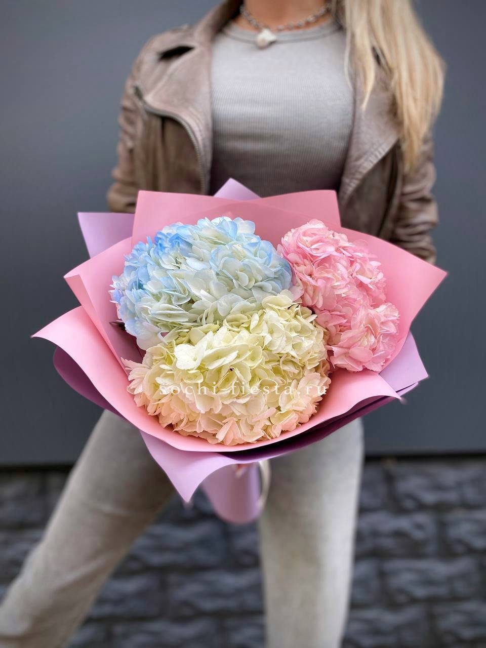 гортензия - 3 шт., лента, дизайнерская упаковка.