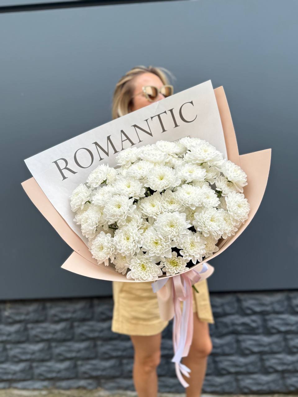 одноголовые хризантемы Бигуди, лента Количество на фото 15 шт.