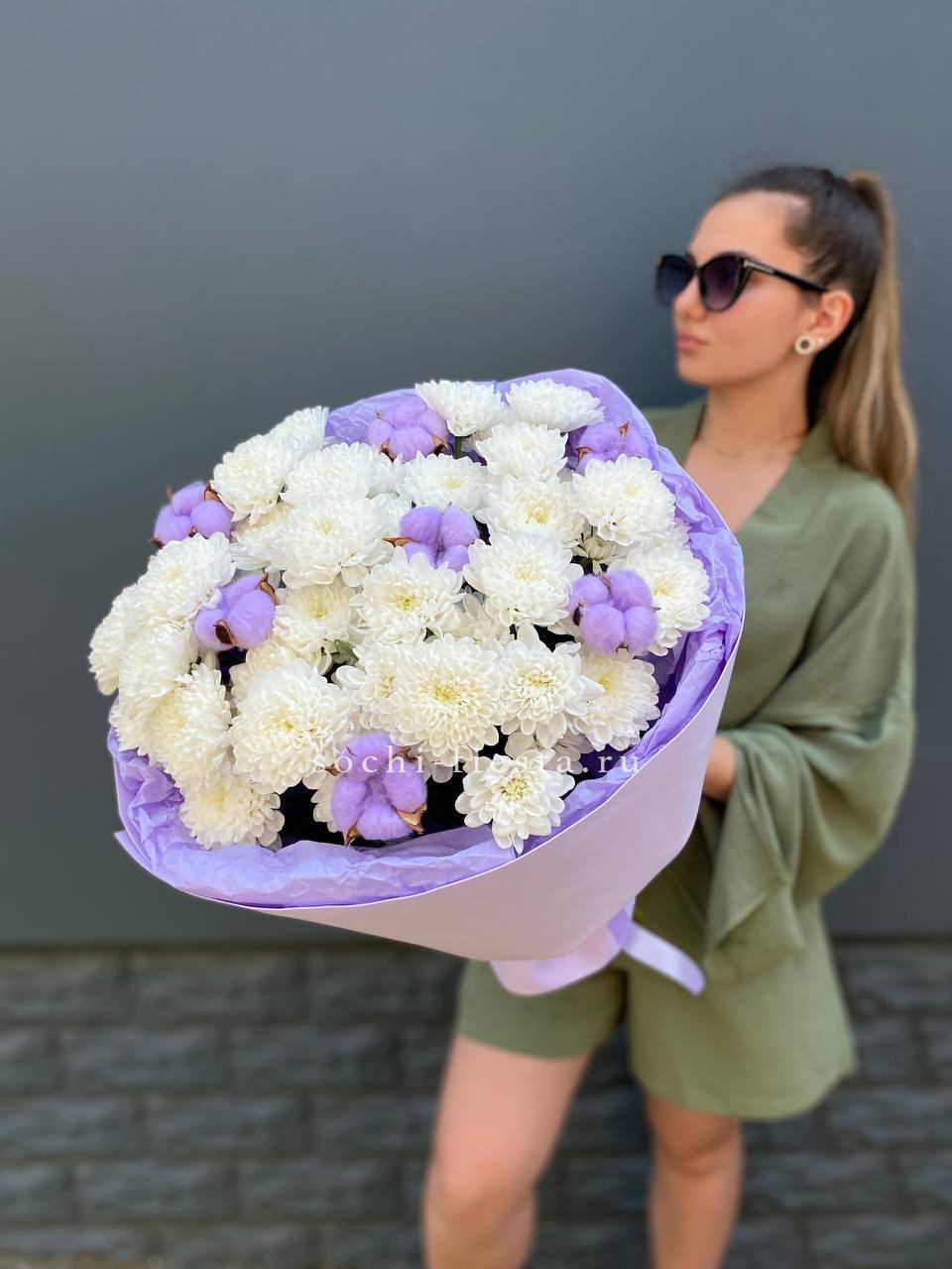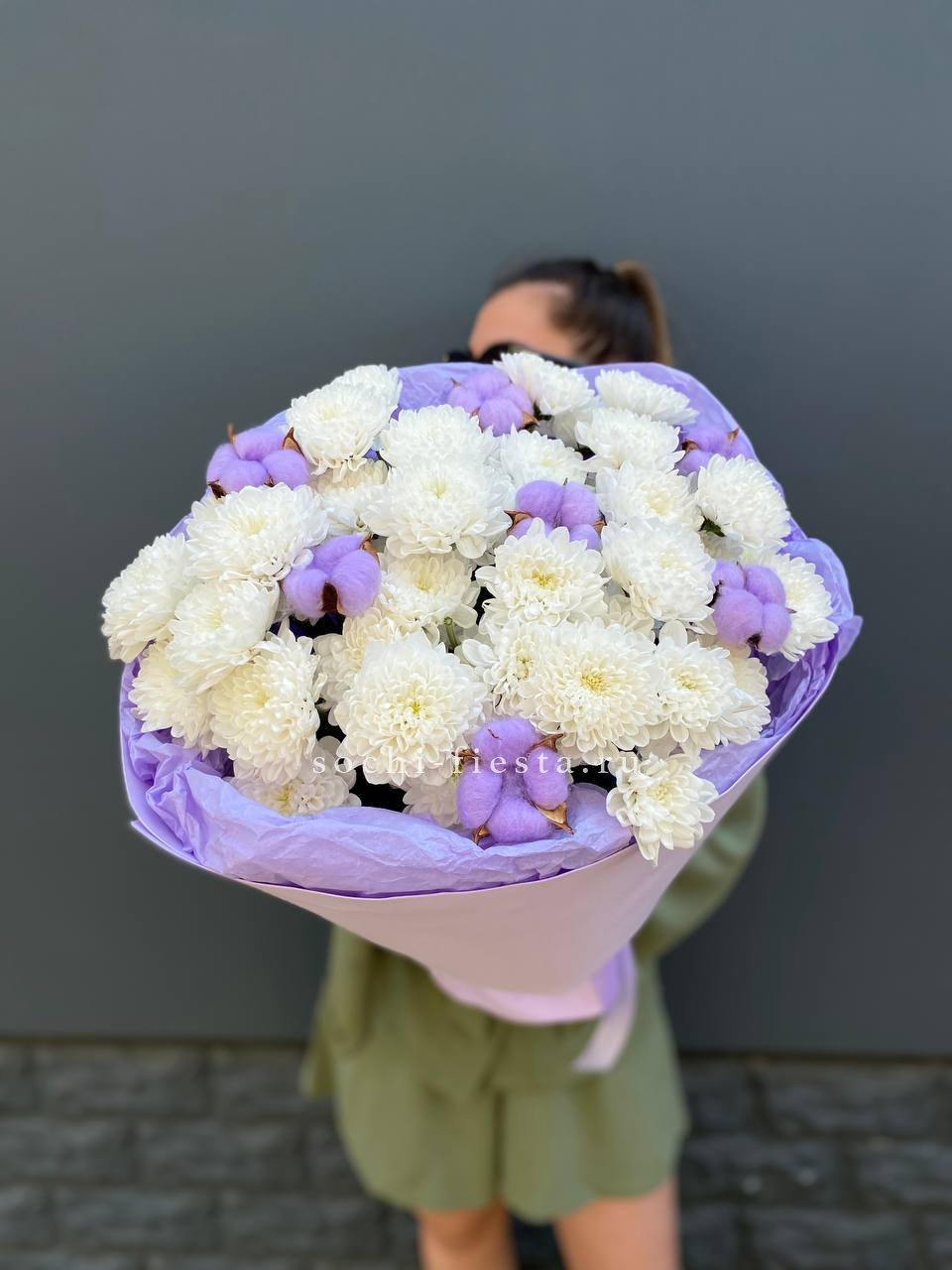 Для заказа товара " Букет хризантем и хлопка" с доставкой в Братске нажмите в корзину