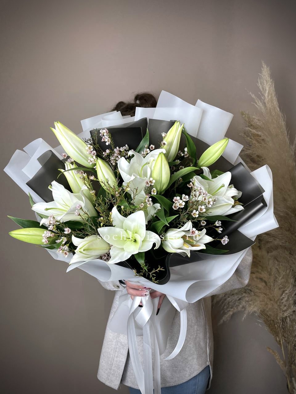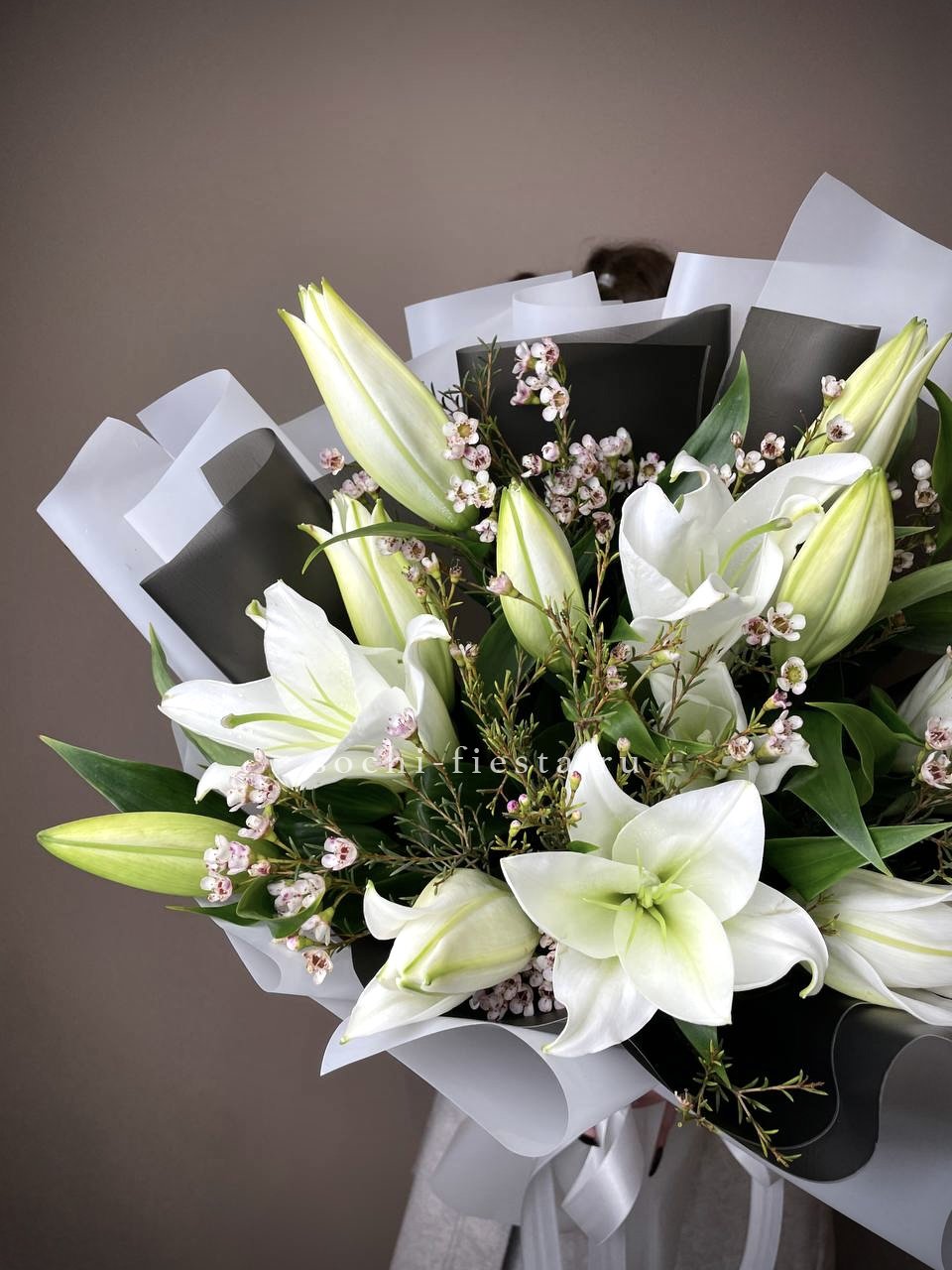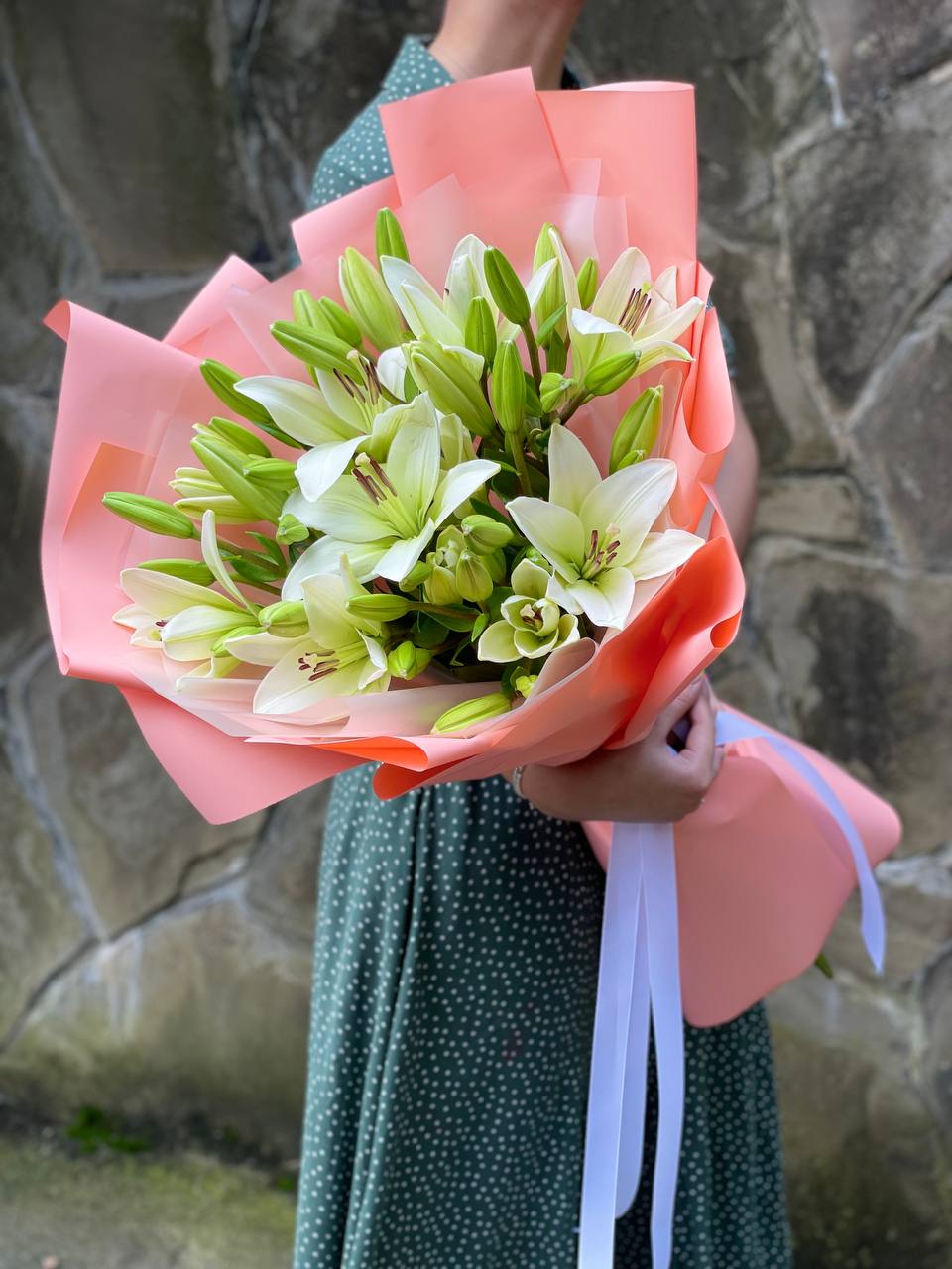 Для заказа товара "Букет лилий "Изумруд"" с доставкой в Братске нажмите в корзину