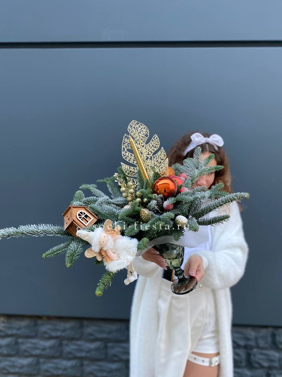 нобилис, бокал, оазис, свечи, новогодние игрушки, декор ВНИМАНИЕ! Готовая композиция (декор) может иметь незначительные внешние отличия от примера на фотографии.