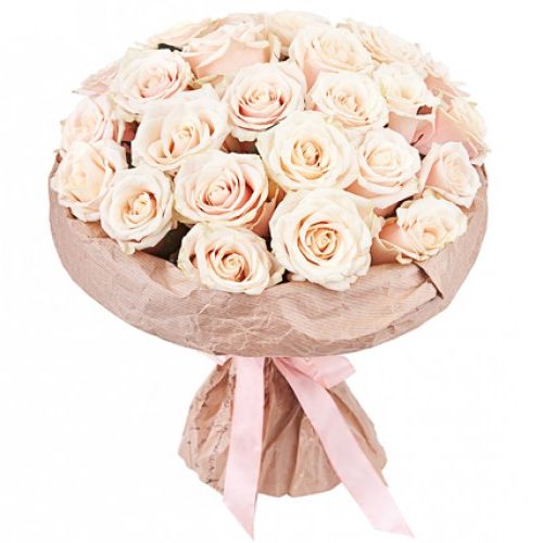 Состав: 25 кремовых роз, лента, мятый крафт