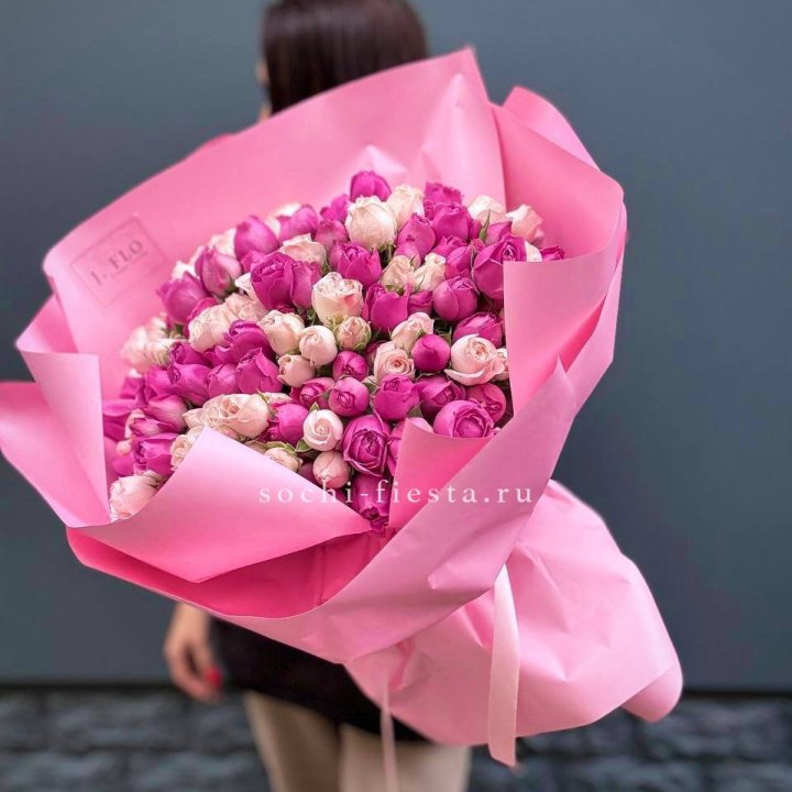 Заказ оформляется на сайте, в Телеграм-канале или по телефону. Моно-букеты 25 и 51 роза всегда в наличии. Специфические сорта, длинные стебли, пионовидные — предзаказ за 2-3 дня.