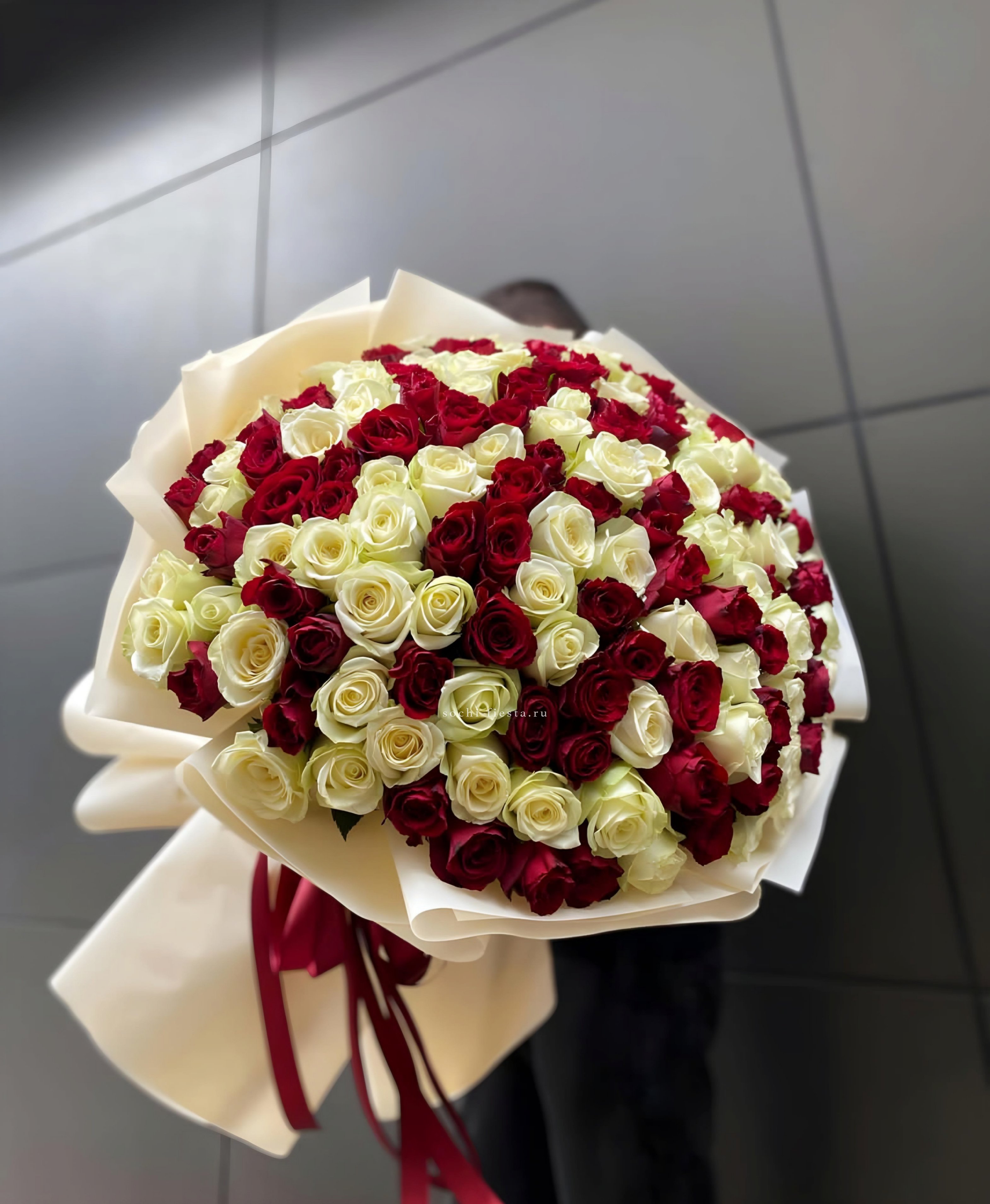 в составе 35 красно-белых роз.