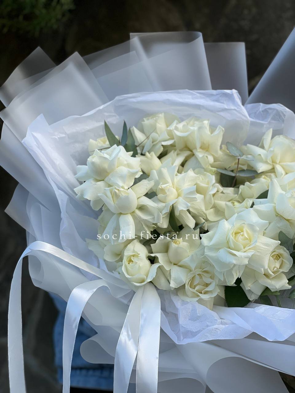 Тринадцать белоснежных бутонов собраны в компактную форму с ровным силуэтом. Букет легко размещается в вазе и сохраняет свежесть долгое время благодаря плотным лепесткам.