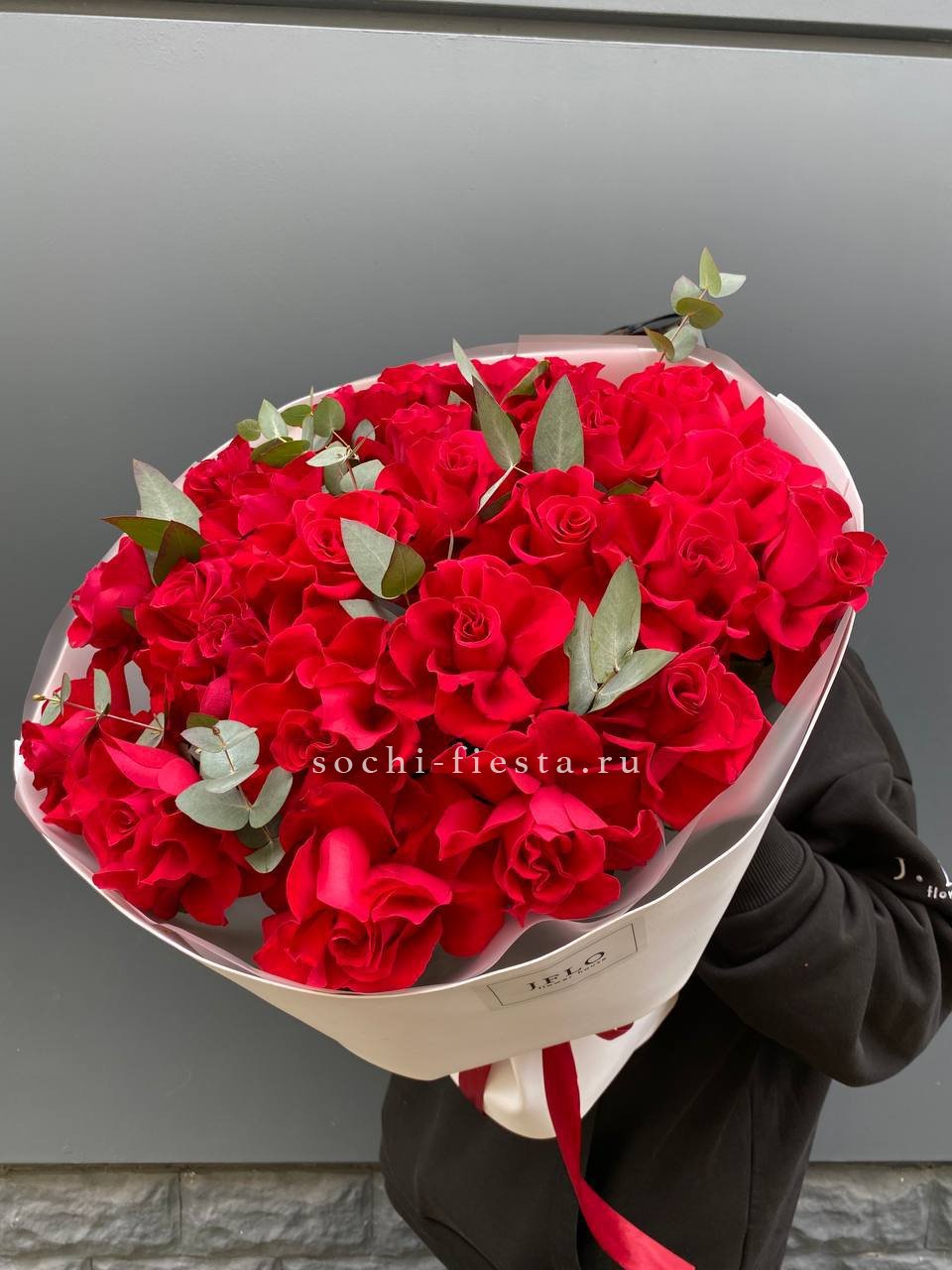 Пятнадцать бутонов насыщенного красного оттенка собраны в плотную композицию. Классическая форма с авторским оформлением подходит для романтичных жестов и ярких моментов.