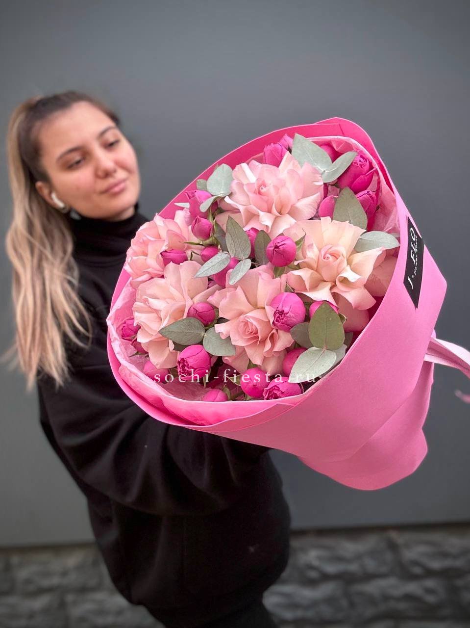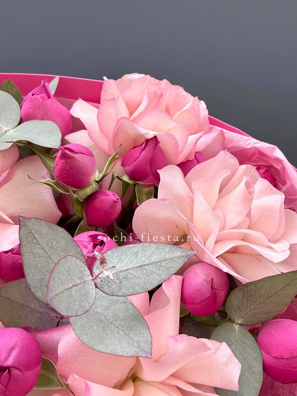 французские розы, пионовидные розы мисти бабблс, эвкалипт, оформление.