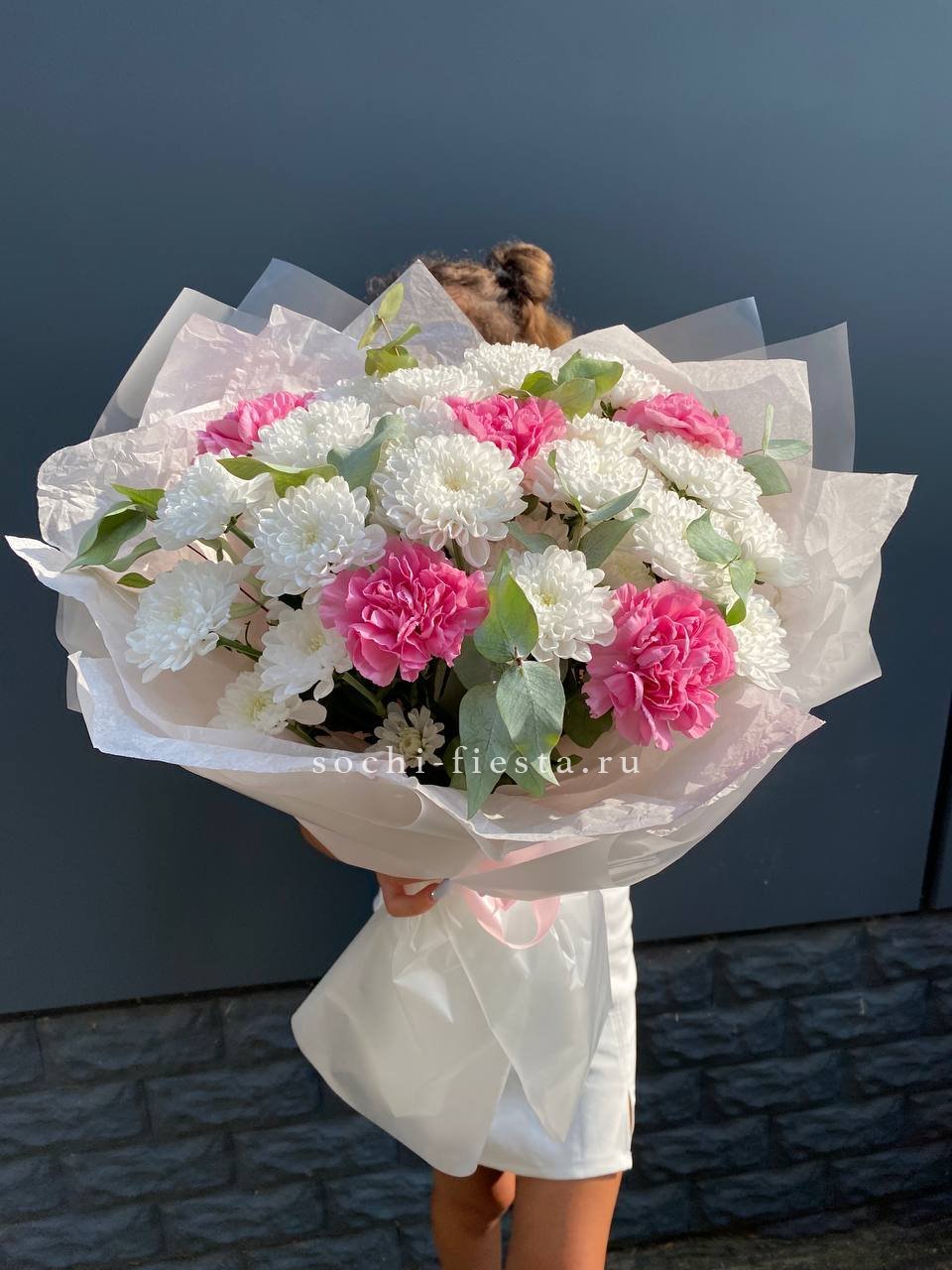 Для заказа товара " Букет хризантем и диантусов "Воздушный"" с доставкой в Братске нажмите в корзину