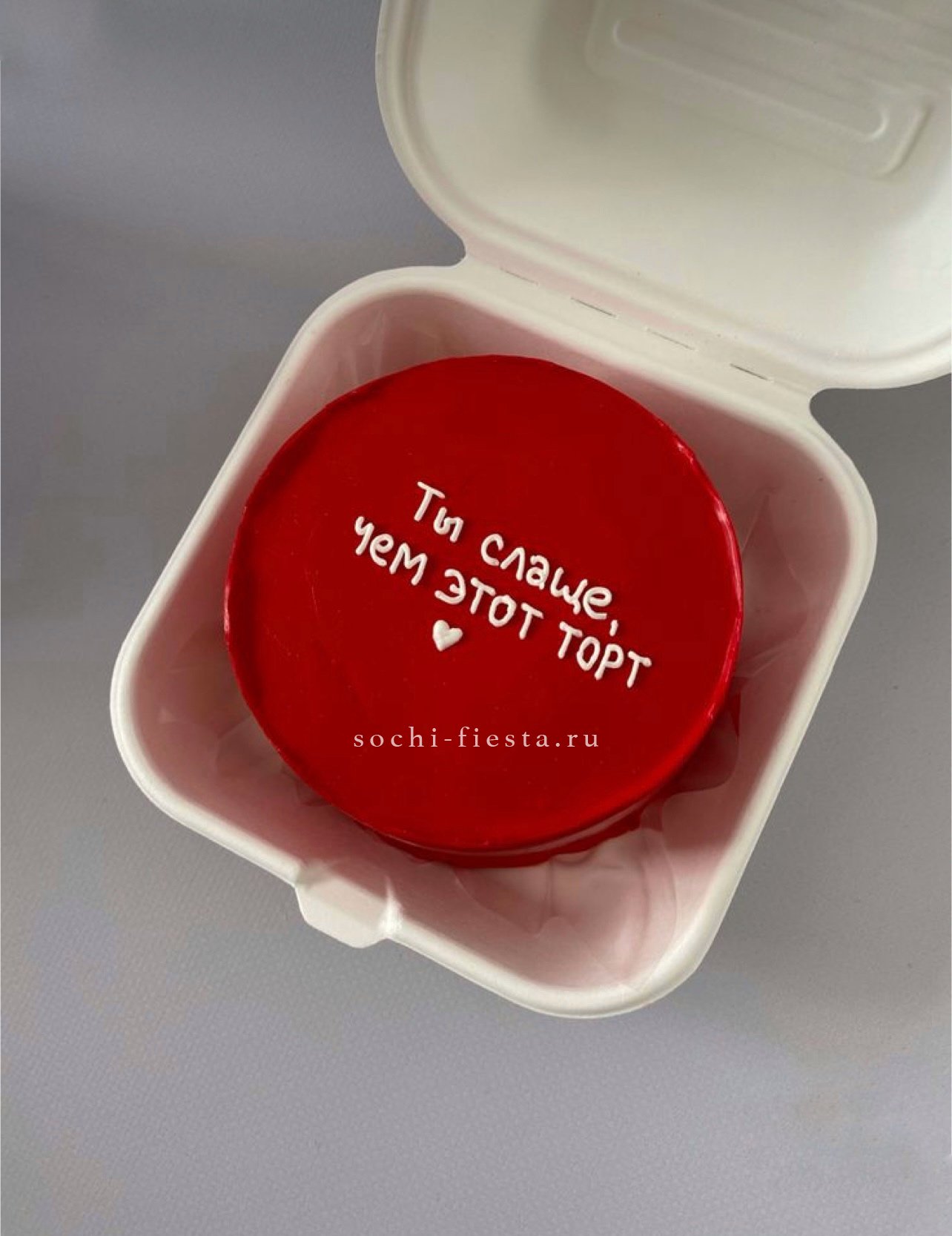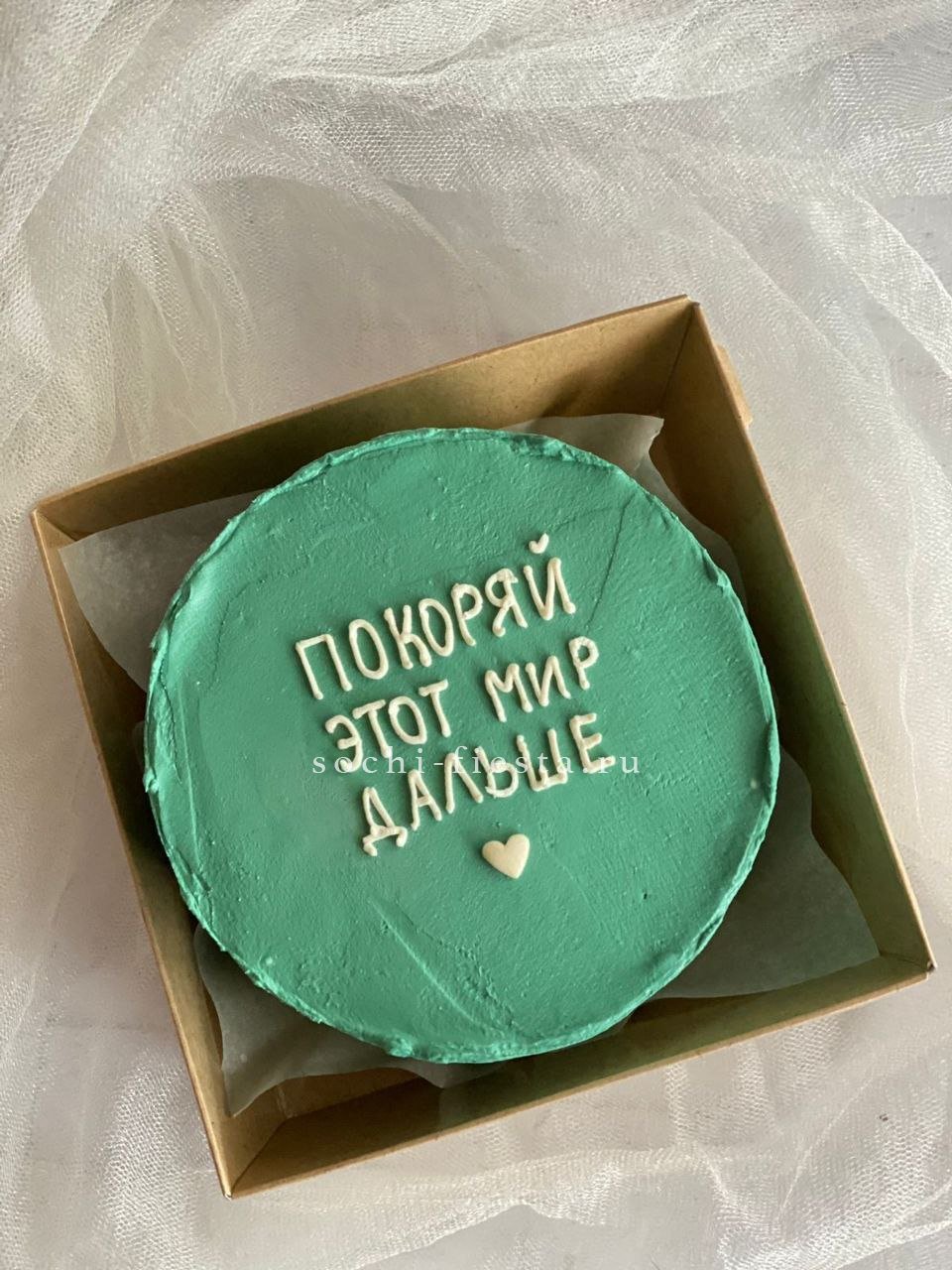 Миниатюрный торт с романтичным декором и насыщенной кремовой основой. Яркие акценты и надпись делают его центром внимания на столе. Клубничный или шоколадный вкус на выбор.