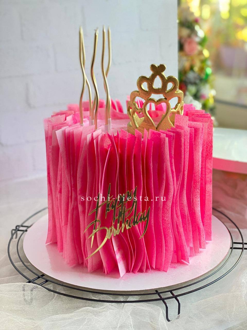 Авторская работа с ровными линиями крема и возможностью персонального послания. Классическая форма и спокойный ритм декора создают ощущение продуманности. Подойдёт для момента, когда важны и вкус, и слова.